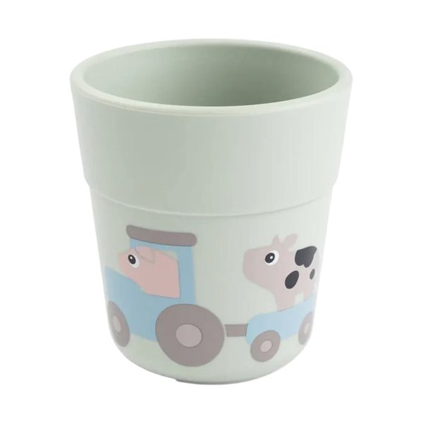 De Done by Deer Foodie Dinerset met Zuignap - Tiny Farm - Groen maakt zelfstandig eten voor je kindje eenvoudig en leuk. Dankzij de zuignap blijft het bord stevig staan en voorkomen de drie vakken dat eten door elkaar raakt. De hoge rand helpt bij het opscheppen en de groene kleur met vrolijk Tiny Farm design maakt elke maaltijd een feestje. set bestaat uit een bord met zuignap, beker, vork en mes. Het duurzame kunststof materiaal is geschikt voor dagelijks gebruik en kan in de vaatwasser, al wordt handwas aanbevolen om de print mooi te houden.