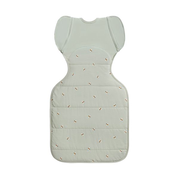 De ergonomische pasvorm van de slaapzak ondersteunt een gezonde heupontwikkeling en biedt voldoende bewegingsruimte. Dankzij de dubbele ritssluiting is verschonen eenvoudig, zelfs in de nacht. De subtiele Olive Bees-print met kleine bijtjes zorgt voor een speelse maar rustige uitstraling.