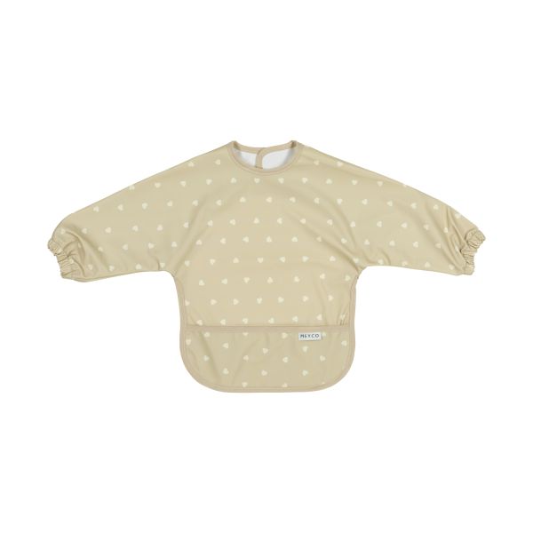 De Meyco Baby Mouwslab is een onmisbare must-have voor elke maaltijd of knutselmoment. Deze praktische slab met lange mouwen is uitgevoerd in een zachte sandkleurige tint met schattige hartjesprint (Sweet Heart Sand/Soft Sand) en biedt optimale bescherming tegen knoeien.