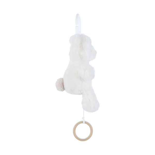 Dankzij de eenvoudige bediening start de melodie moeiteloos: trek gewoon aan de ring van thermoplastisch rubber en de muziek begint te spelen – zonder batterijen of opladen. Zo blijft het gebruik veilig, duurzaam en kindvriendelijk.