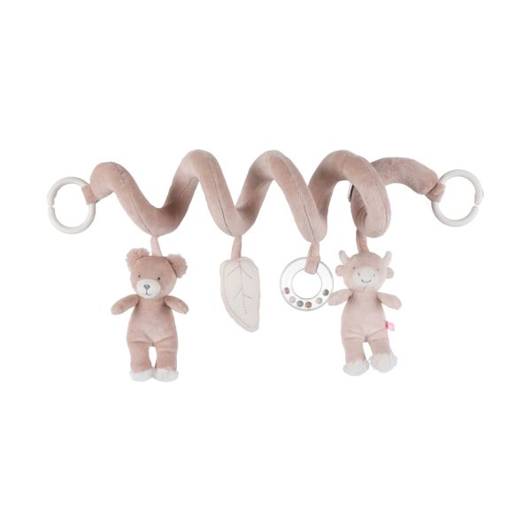 Dankzij de handige C-vormige lus bevestig je de spiraal eenvoudig aan een park, autostoel groep 0, kinderwagen of bedje. Zo heeft je kindje altijd een bron van vermaak binnen handbereik. De zachte materialen, knisperend papier en speelse vormen nodigen uit tot voelen, grijpen en ontdekken, wat de hand-oogcoördinatie bevordert.