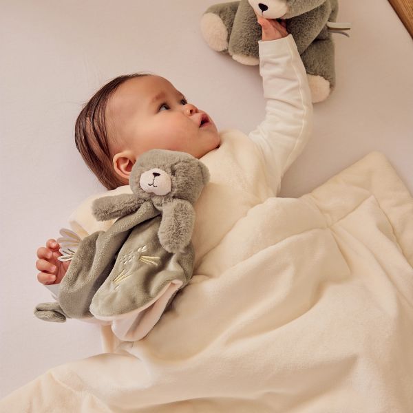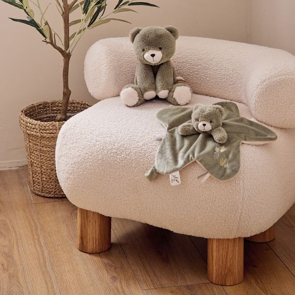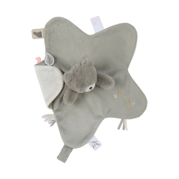 Het Noukie's F&O Knuffeldoekje Beer is een zachte, vertrouwde metgezel vanaf de eerste momenten. Gemaakt van heerlijk zacht kaki Veloudoux®, biedt dit knuffeldoekje van beer Orso een gevoel van geborgenheid en rust. Met fijne borduursels van natuurelementen en speelse labeltjes is het een stijlvol én functioneel troostdoekje voor elk moment van de dag.