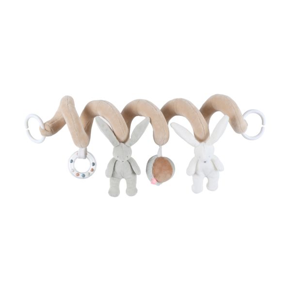 Dankzij de flexibele C-vorm bevestig je de spiraal moeiteloos aan een wiegje, autostoel of kinderwagen. De verschillende texturen, patronen en kleuren prikkelen de zintuigen, terwijl je baby al spelend zijn tastzin en visuele waarneming ontwikkelt. Knisperpapier, belletjes en een rammelaar zorgen voor extra speelsheid en stimuleren het gehoor.