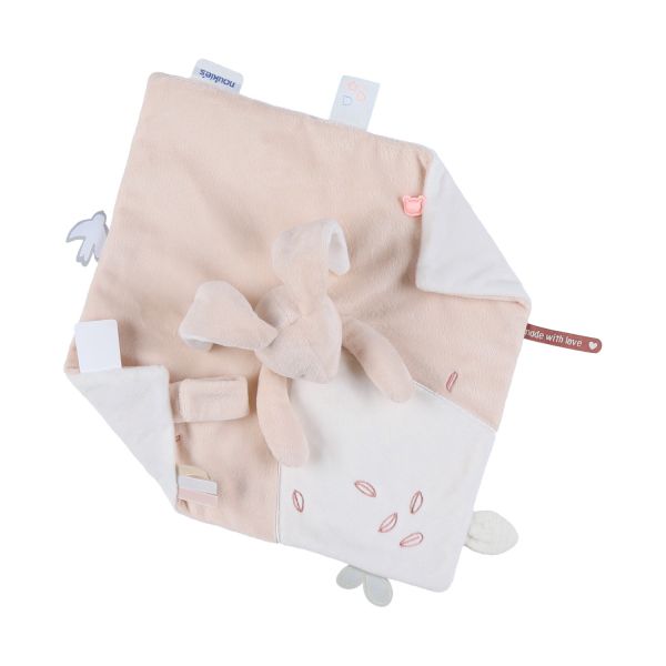 Verschillende zachte labeltjes stimuleren de tastzin en motoriek van je baby en bieden tegelijkertijd troost en rust. Het knuffeldoekje is gemaakt van hoogwaardige materialen die eenvoudig schoon te maken zijn en voldoet aan alle strenge Europese veiligheidsnormen. Een praktisch, hygiënisch en hartverwarmend accessoire voor elke baby.