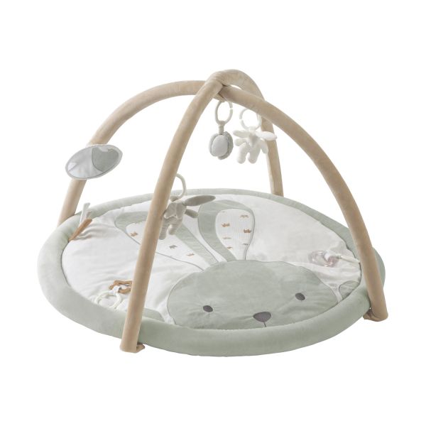 De speelmat bevat allerlei interactieve elementen zoals knisperende oren, een bijtspeeltje, een spiegel en een rammelaar met kralen. Deze prikkelen het gehoor, de tastzin en de visuele ontwikkeling. Terwijl je baby rolt, reikt en duwt, bevordert het kleed op natuurlijke wijze de fijne motoriek en hand-oogcoördinatie. De stevige vulling zorgt voor comfort en veiligheid tijdens elk moment van ontdekking.