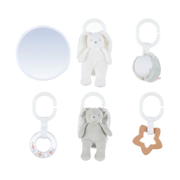 - Inclusief 1 spiegel, 1 bijtspeeltje, 1 rammelaar met kralen