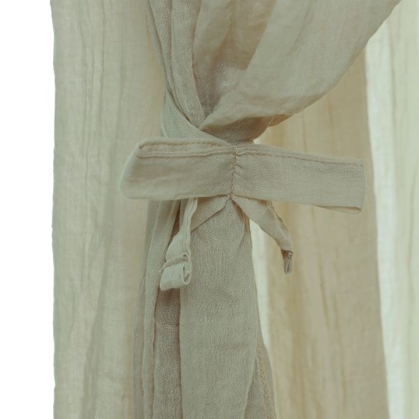 Breng sfeer en geborgenheid in de babykamer met de Witlof for kids Klamboe Sluier - Soft Sand. De luchtige stof en neutrale zandkleur creëren een rustgevende omgeving waarin je kindje heerlijk kan slapen. De sierlijke strikjes maken het geheel extra charmant. Deze klamboe is gemaakt van een ademende mix van katoen en polyester en past perfect boven een wiegje of ledikant. Een stijlvolle toevoeging aan elk interieur, van klassiek tot modern.